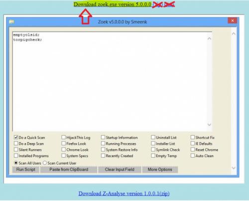 Aan enkele bestanden in het logje te zien heb je dit niet gedaan of is dit niet correct verlopen. Pak dus nogmaals alles uit en start daarna de uitgepakte versie van Zoek.exe.