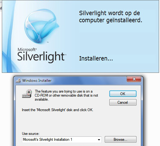silverlight kan ik niet instaleren af en toe vraagt een pagina dit te doen (zie screen onderaan)