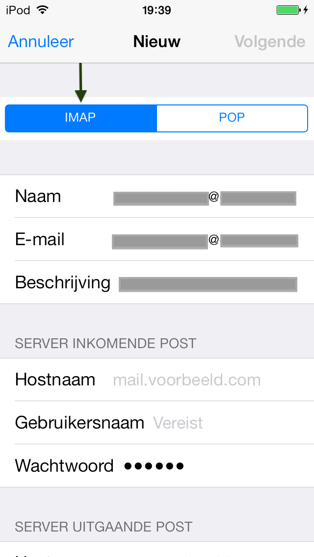 op de ifone kan ik geen pop 3 instellingen ingeven juist smpt instellingen