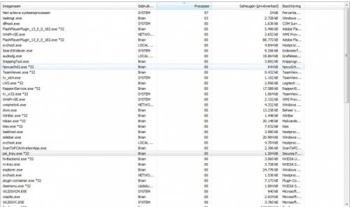 Klik nu op de hoofding van de kolom "processor" tot de processen die cpu verbruiken bovenaan staan.
