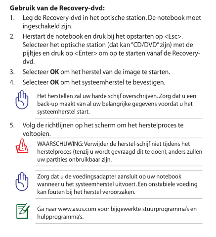 Verder vraag ik me af wat je bedoelt met recovery cd/dvd?