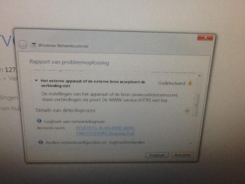 Kan niet op het internet komen met de PC, daarom een foto gemaakt v het probleem en met de Ipad naar U gezonden,