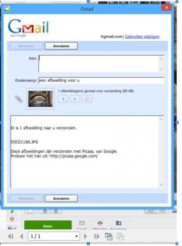 Ik kan wel vanuit picasa kiezen met welke mail ik een afbeelding wil versturen.