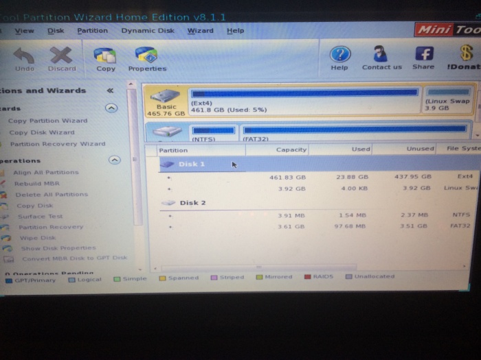 Je Windows is volledig overschreven, al je partities zijn gewist (recoverypartitie inbegrepen ! ...) en je harde schijf staat compleet in ext4, het door Linux gebruikte bestandssysteem ... :dong:
