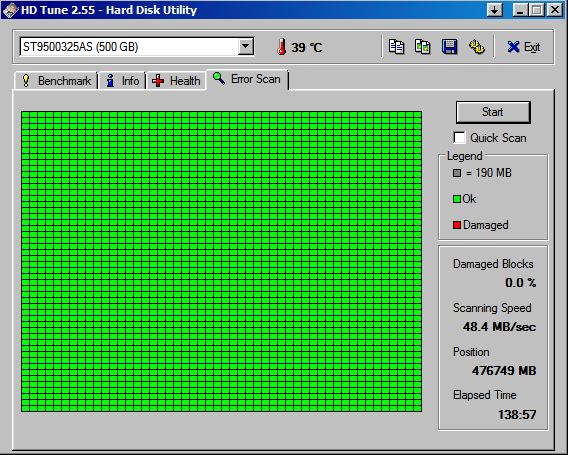 Vervolgens ga je naar het tabblad Error Scan, selecteer de harde schijf die je wil controleren en druk op Start.