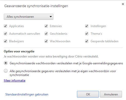 Indien je een Google account hebt worden dan al je instellingen van Google Chrome over gezet naar Citrio.