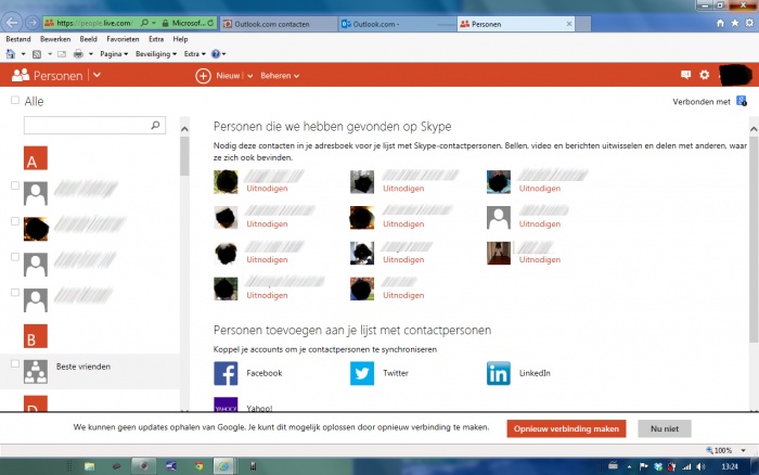 Als ik mijn Microsoft/outlook account open om mijn contacten te bewerken dan zie ik in het rechterveld de tekst;