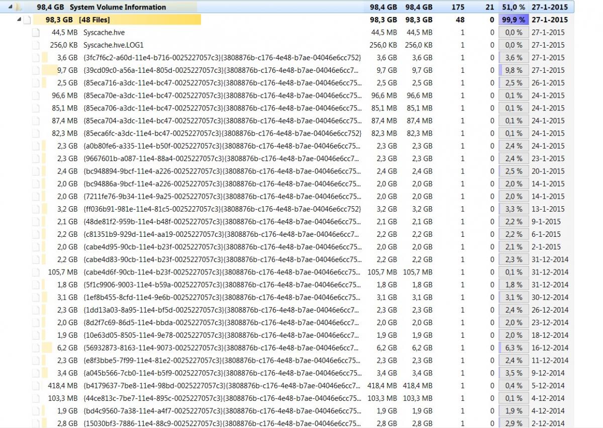 Ik zag in een oude scan log dat ik in 24-7-2014 nog 116 Gb had van de 221Gb.