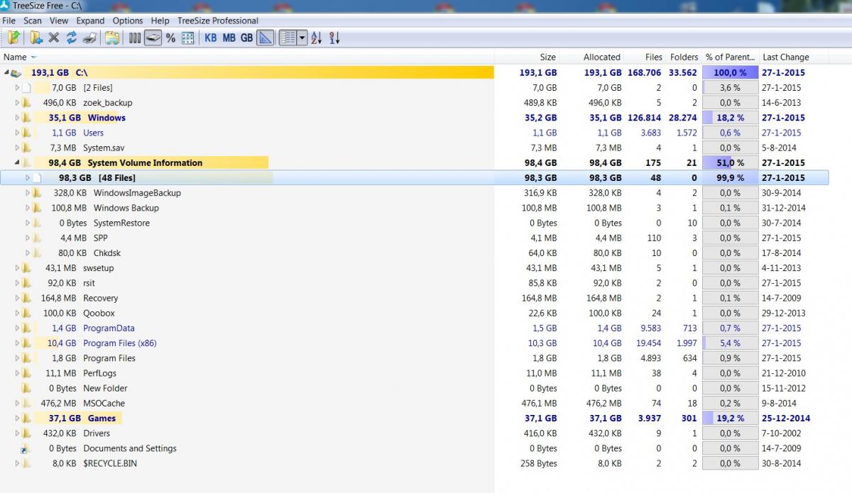 Je hebt alweer ruim 80GB vrij op de C schijf :)