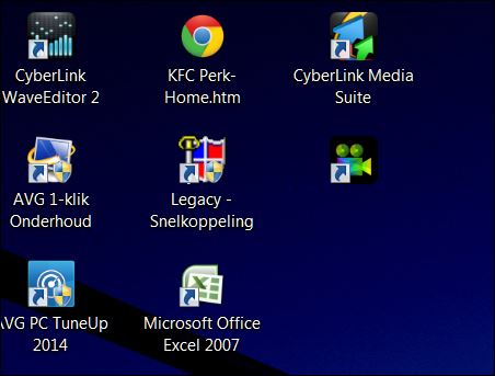 Op de voornoemde knip van mijn bureaublad  kan je zien dat de benaming bij het Cyberlink-icoon ontbreekt.