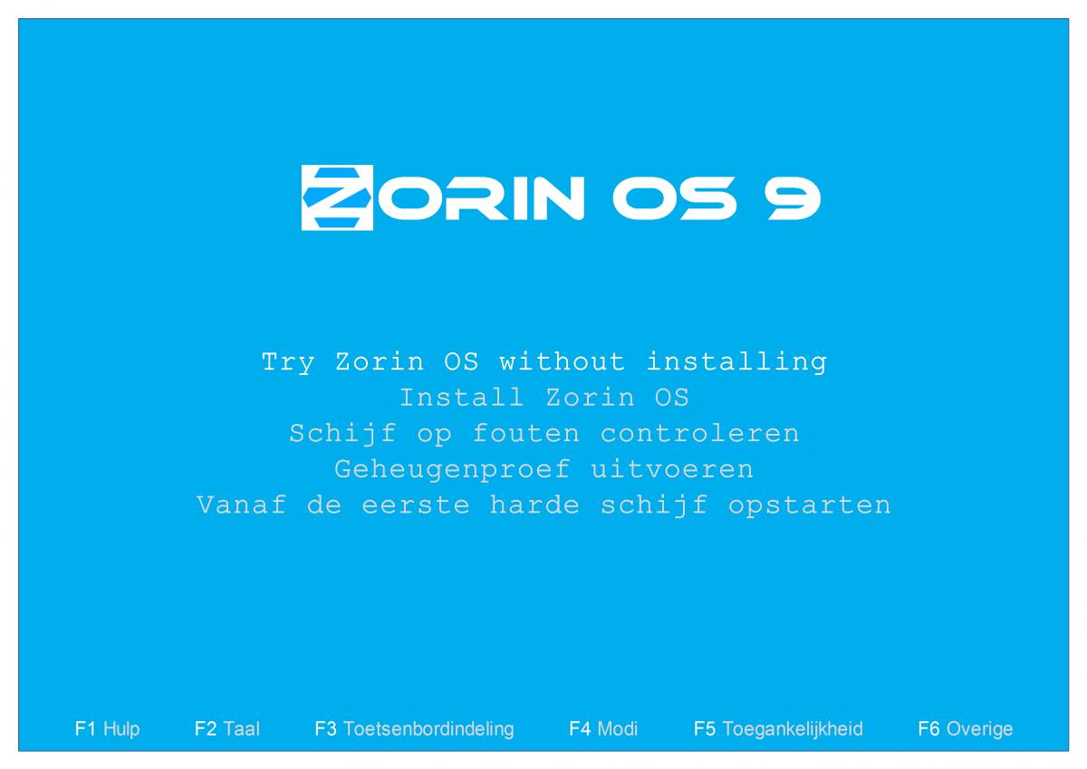 dan komt u in het splashscreen zoals dit ongeveer (ik gebruik de voorbeelden van Zorin maar die zijn dezelfde van Mint alleen in een andere kleur)