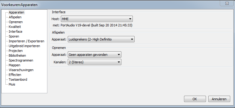 Ik heb nu versie 2.0.1 gedownload - ziet er iets anders uit en de opname wil maar niet lukken. Ik heb het idee dat er een instelling niet goed staat...