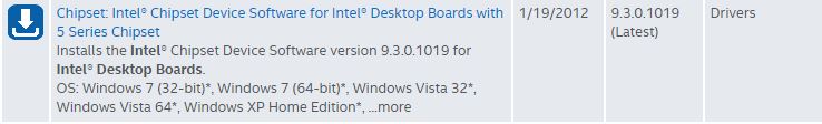 Chipsetdrivers: https://downloadcenter.intel.com/downloads/eula/20821/Chipset-Intel-Chipset-Device-Software-for-Intel-Desktop-Boards-with-5-Series-Chipset?httpDown=http%3A%2F%2Fdownloadmirror.intel.com%2F20821%2Feng%2FINF_allOS_9.3.0.1019.exe