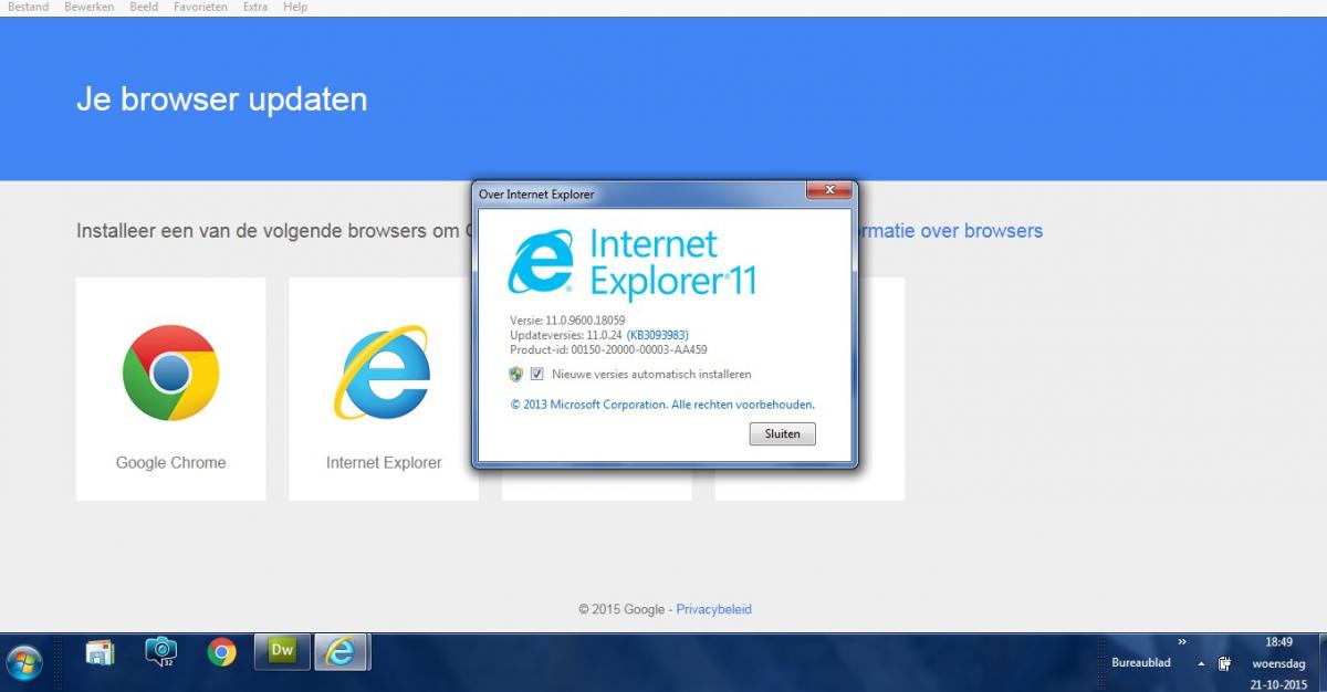Waarom als ik de browser google Chrome gebruik lukt het wel en niet in IE