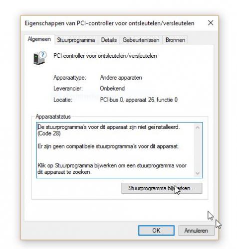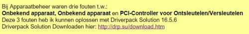 Koppel ook de externe hardware eens af en herstart de laptop, kijk dan in apparaatbeheer of daar nog een melding is.