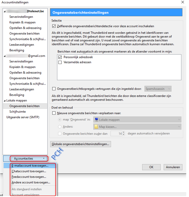 Je krijgt dan onderstaand scherm. Klik er op Accountsacties-> E-mailaccount toevoegen…