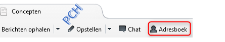 Via het Adresboek (4) kan je contacten aanmaken, ze beheren en mailinglijsten opstellen.