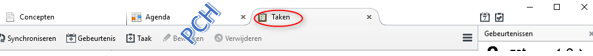 Er zijn nu 3 tabbladen actief….  Berichten, Agenda en taken.