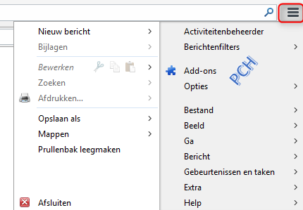 De menubalk is standaard niet aanwezig, die gaan we  activeren via het Thunderbird-menu-> Opties-> Menubalk.