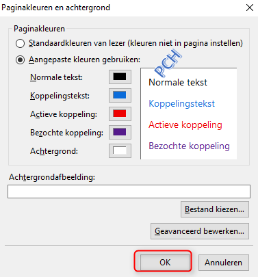 In het volgend scherm kies je de gewenste kleuren of klik je op Bestand kiezen… als je een afbeelding wil toevoegen.