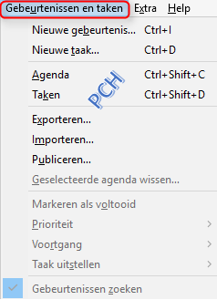De agenda of Taken openen of nieuwe taken en gebeurtenissen aanmaken doe je via Gebeurtenissen en taken.