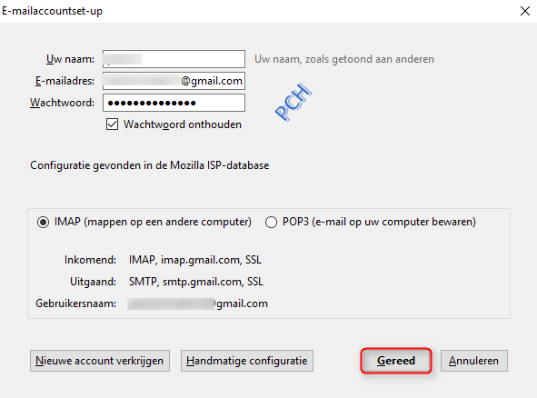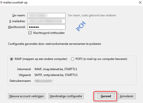 Zelf heb ik een telenet account aangemaakt, de instellingen werden automatisch gevonden en ik hoef dus nog enkel op Gereed te klikken.