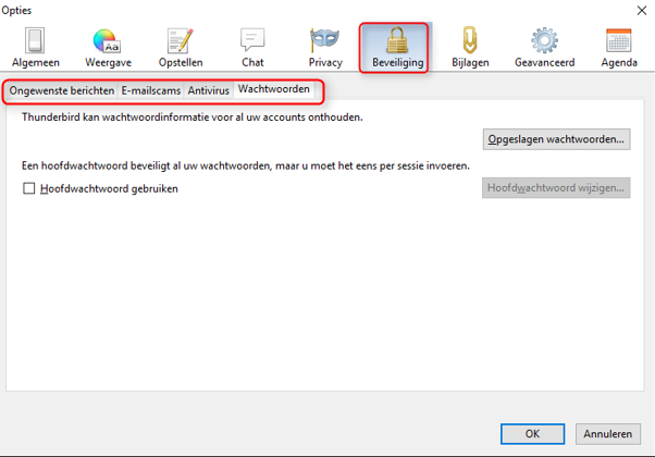 •  Instellingen omtrent wachtwoorden pas je aan op het tabblad Wachtwoorden.