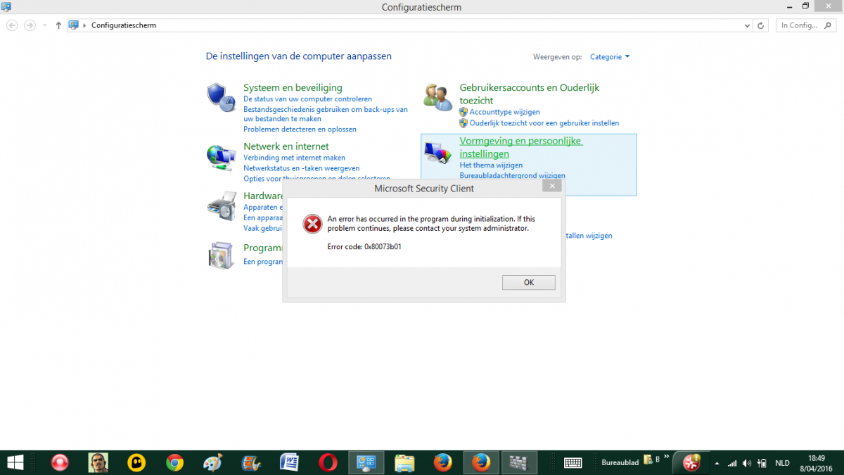 Sinds enkele dagen heb ik een probleem met mijn Windows Defender. Ik krijg namelijk deze error code : "0x80073b01" als ik mijn Windows defender wil inschakelen ( zie bijlage ) en ik weet absoluut niet wat de oorzaak is van dit probleem.
