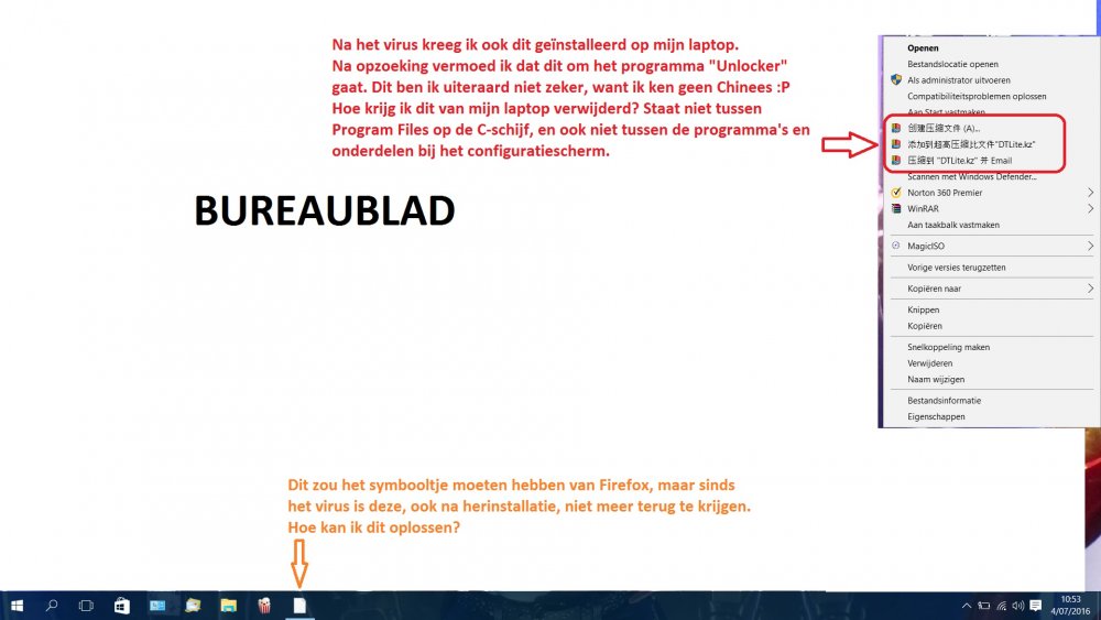 Twee dagen geleden heb ik per ongeluk iets gedownload (Norton gaf melding dat het om een gevaarlijk bestand ging, en ik zo rond geweest om per ongeluk op doorgaan te klikken i.p.v. installatie annuleren), en hierdoor heb ik dus een virus binnengehaald, welke vanalles op mijn laptop heeft geïnstalleerd na het heropstarten.