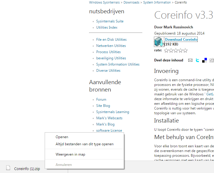 er staat nu een zip file op uw bureaublad, rechtsklik er op en kies voor uitpakken in coreinfo