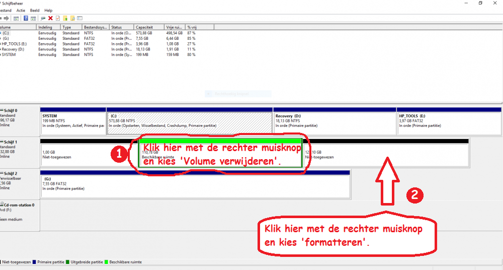 Klik met de rechter muisknop op START en kies 'Schijfbeheer'.