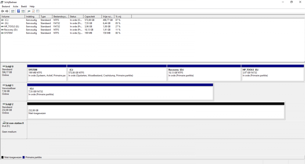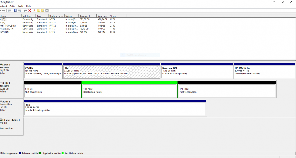 Ook niet in schijfbeheer?