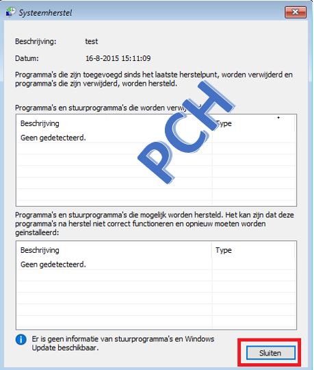 Wil je weten of het terug zetten van het herstelpunt gevolgen heeft voor geïnstalleerde software of drivers  klik dan op zoeken naar programma’s die worden beïnvloed.