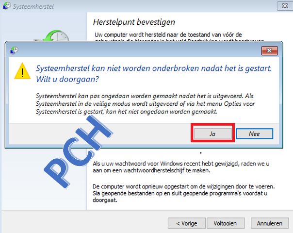 Als het systeemherstel voltooid is klik je op opnieuw opstarten.