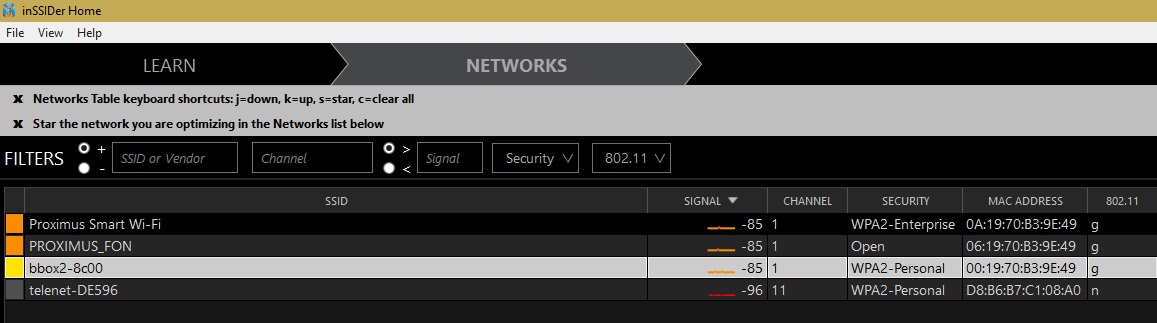 Wat echter opvalt tussen beide foto's is dat jouw laptop blijkbaar slechts 4 SSID's "ziet", en de Toshiba 11!  Wordt dus vervolgd.