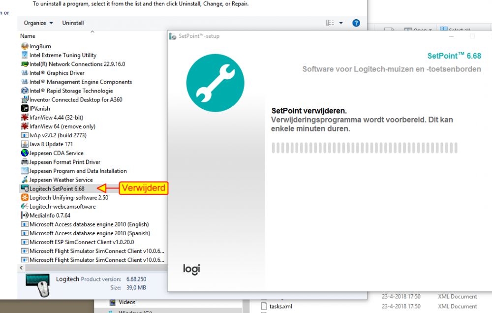 Verder heb ik na de installatie de computer opnieuw opgestart, maar wat wordt bedoelt met "Setpoint is niet geïnstalleerd"