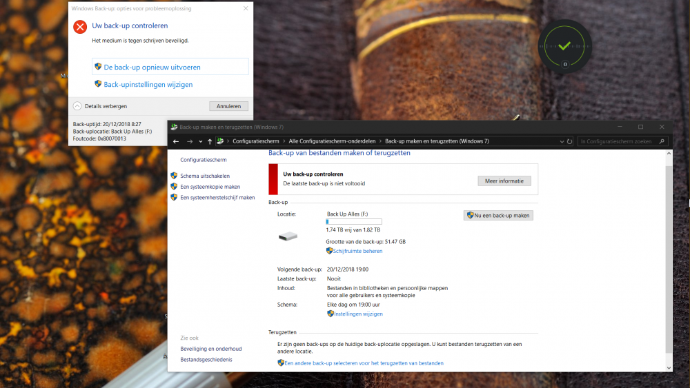 Windows 10 versie 1809 backup mislukt foutcode 0x80070013