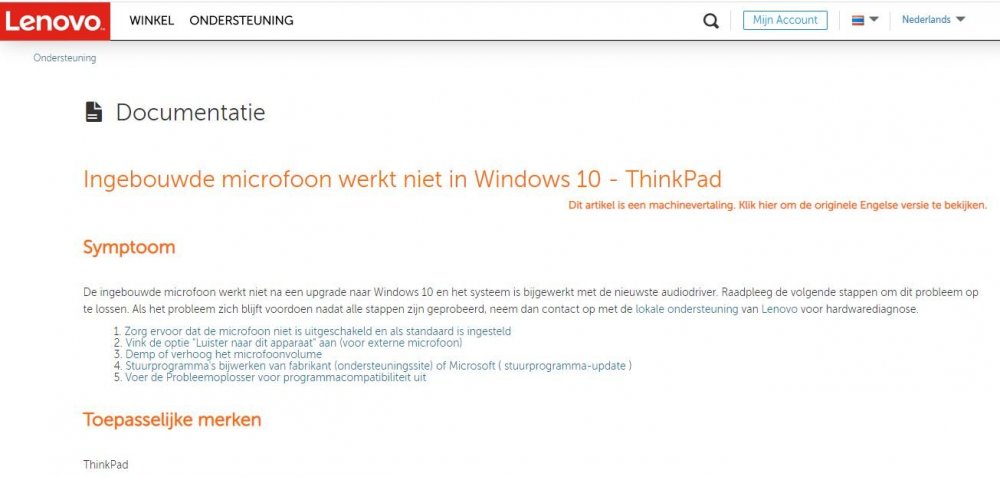 Jammer, wordt niet vermeld bij de camera. Geen idee waarom dat niet het geval is. Als alternatief zou je eens kunnen testen of je alle items bij "microfoon" op "aan" zet, om te bekijken of dit enig resultaat oplevert.