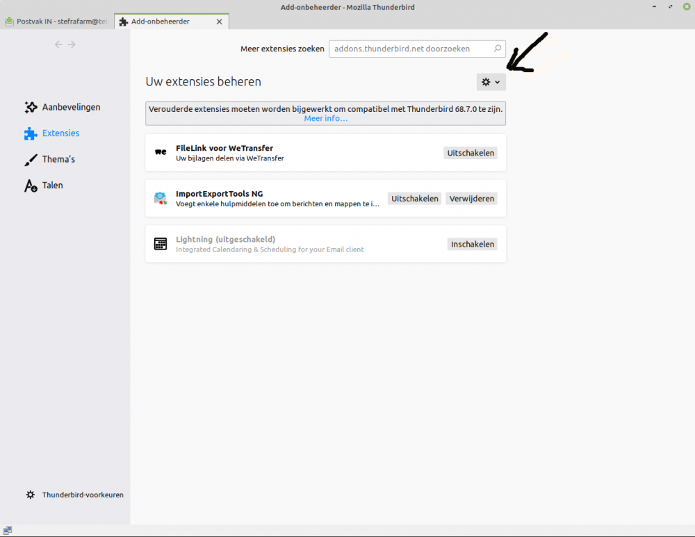 Open Thunderbird en klik op uw mailadres en dan ziet je rechts onderaan mapabonnement beheren.