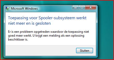 Nu zou de spoolservice 't moeten doen en de printer geïnstalleerd kunnen worden.