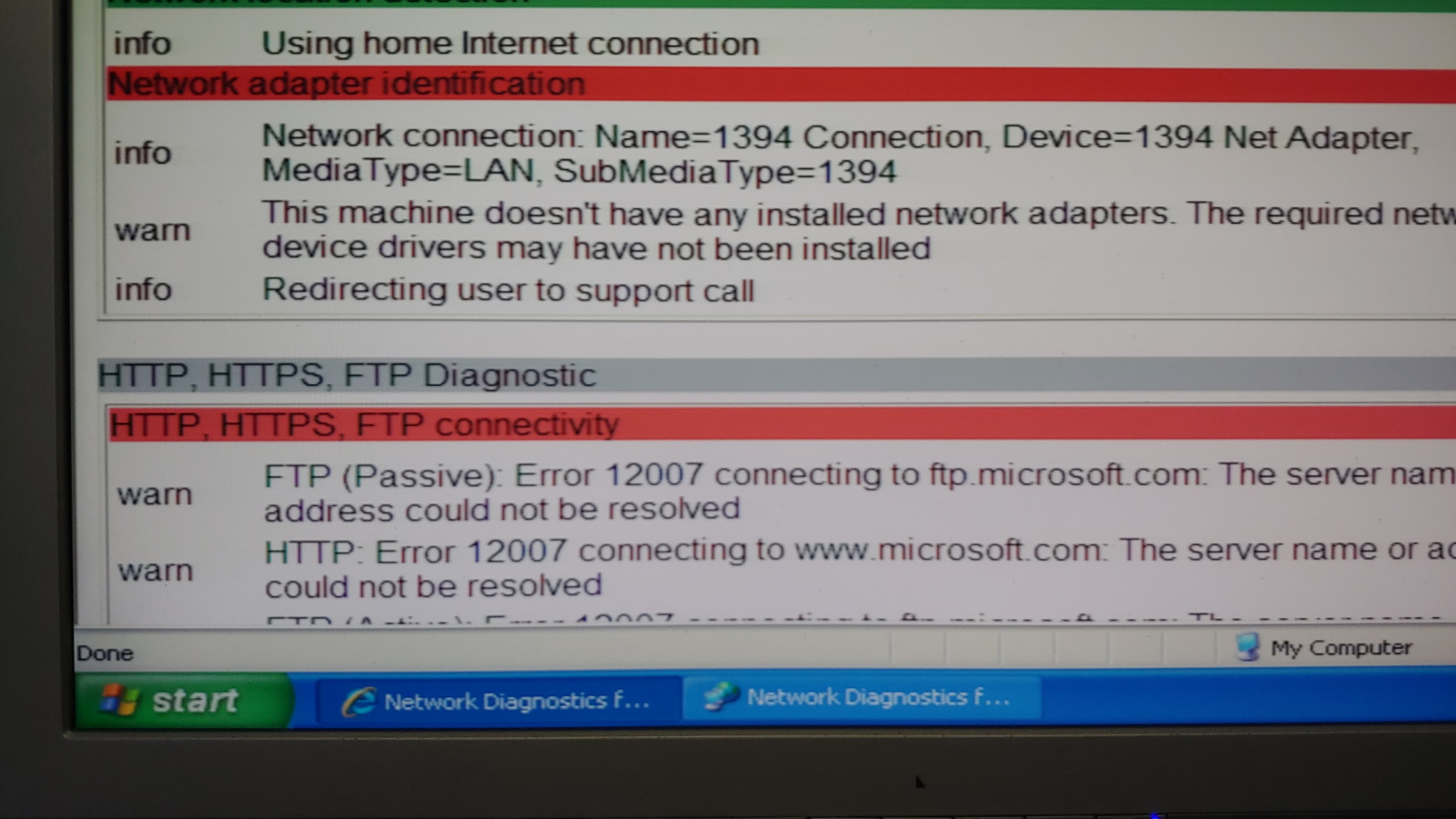 Blijkbaar heeft Windows XP de benodigde driver voor je netwerkadapter niet aan boord. Die driver zul je dus met een andere pc moeten downloaden, waarna je hem met een USB stick overbrengt naar de probleem-pc.