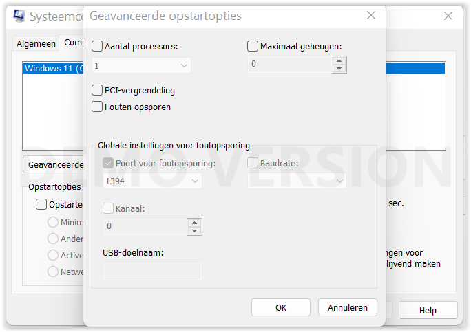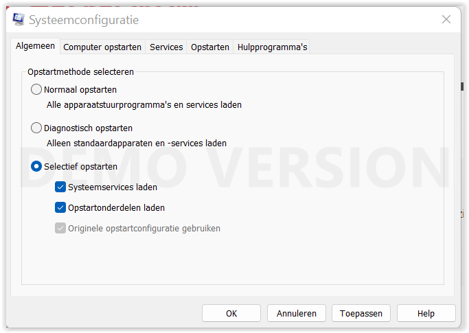 Wel raad ik je aan om de opstart methode eens naar selectief te zetten en de eerste 2 opties te kiezen de 3de niet.