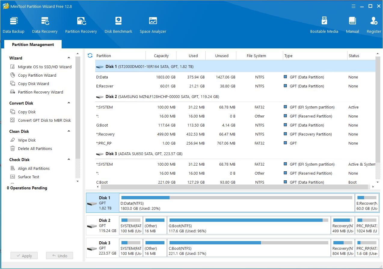 Daarom heb ik met de MiniTool Partition Wizard de recovery partitie aangepast op de grotere SSD. Die partitie had inderdaad geen 250 MB vrij.