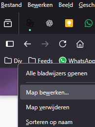 Dus als je in de Bladwijzerwerkbalk met je rechter muisknop klikt op een map en je kiest: Map bewerken....