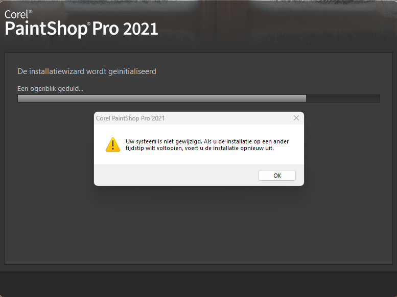 Ik voer het uit als administrator, en wat je als link gaf gaat om Corel DRAW Graphics Suite 2021. Maar ik heb het over Corel Paint Shop Pro2021 En die heeft het altijd gedaan na dat ik de 2023 erop zette wilde geen andere er meer op dan alleen de 2020 en de 2019.